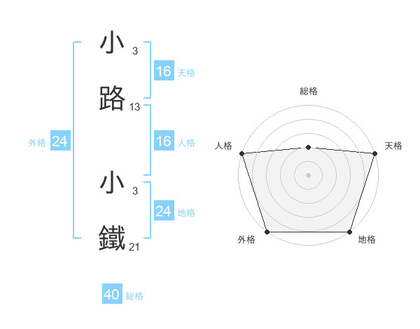 小路 小鐵さんの外格は24画の5点!