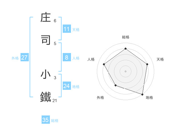 庄司 小鐵さんの外格は27画の3点!
