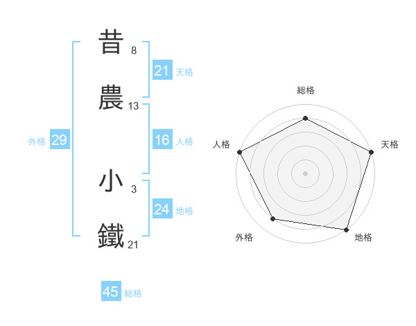 昔農 小鐵さんを姓名の画数から五運を鑑定