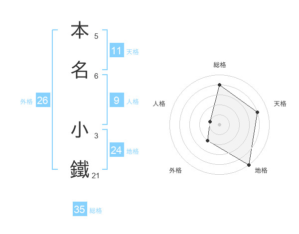 本名 小鐵さんを姓名の画数から五運を鑑定