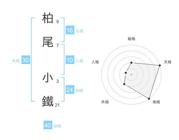 柏尾 小鐵さんの天格は16画の5点!