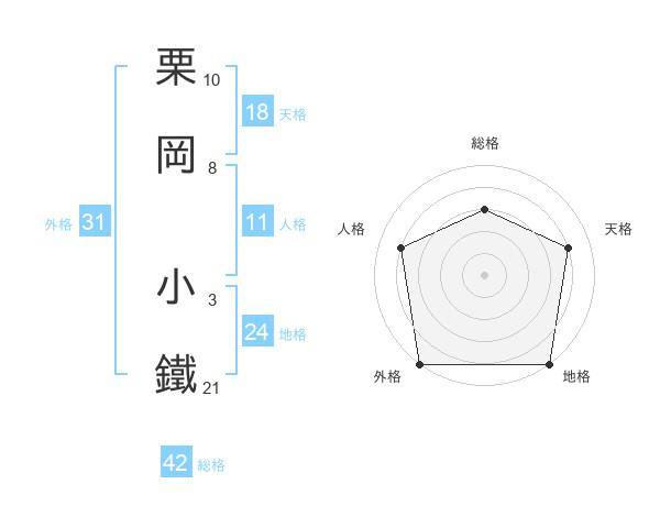 栗岡 小鐵さんを姓名の画数から五運を鑑定