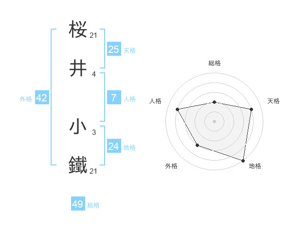 桜井 小鐵さんの地格は24画の5点!