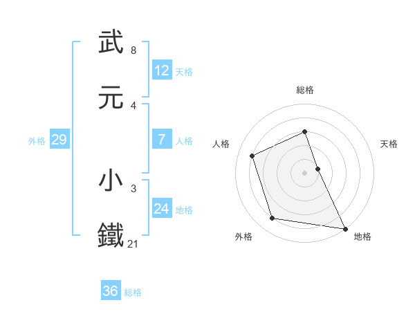 武元 小鐵さんを姓名の画数から五運を鑑定