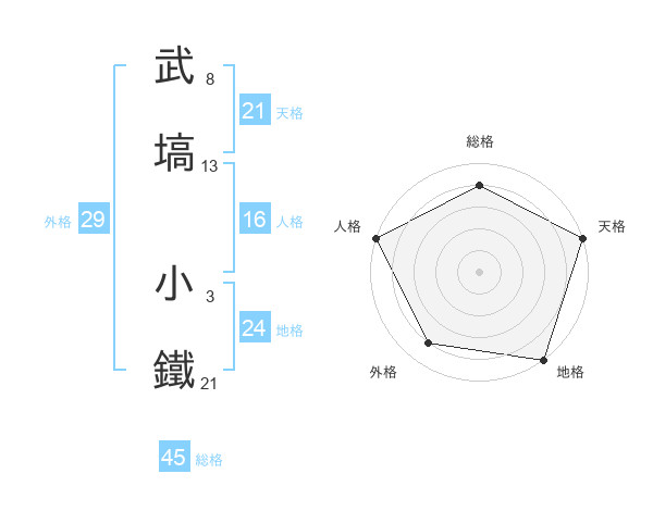 武塙 小鐵さんを姓名の画数から五運を鑑定