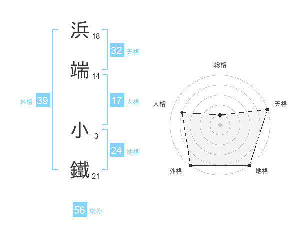 浜端 小鐵さんを姓名の画数から五運を鑑定