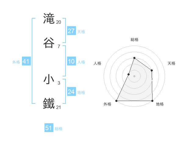 滝谷 小鐵さんを姓名の画数から五運を鑑定