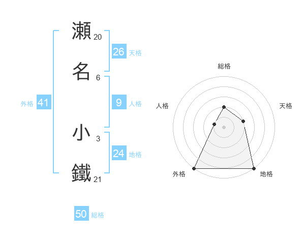 瀬名 小鐵さんの総格は50画の2点!
