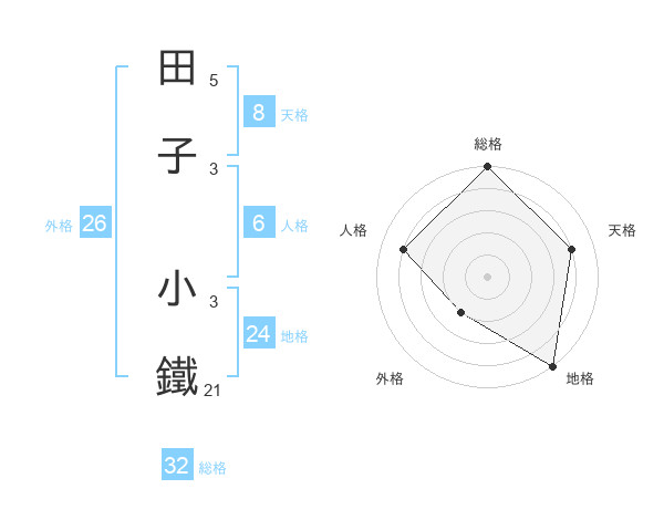 田子 小鐵さんを姓名の画数から五運を鑑定