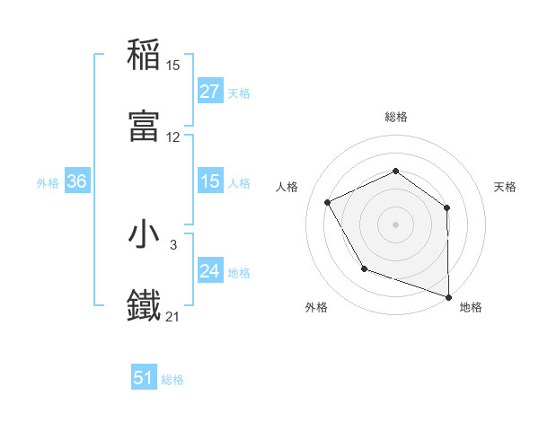 稲富 小鐵さんを姓名の画数から五運を鑑定