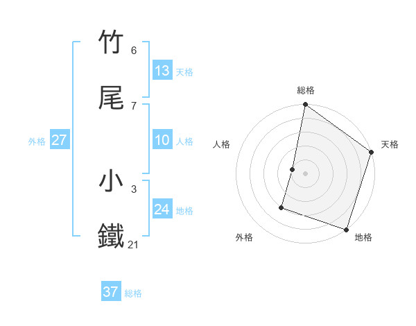 竹尾 小鐵さんの総格は37画の5点!
