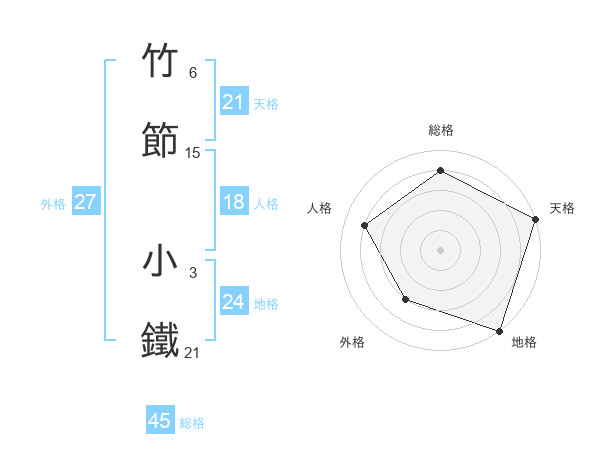 竹節 小鐵さんの総格は45画の4点!