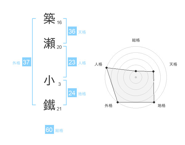 築瀬 小鐵さんの外格は37画の5点!