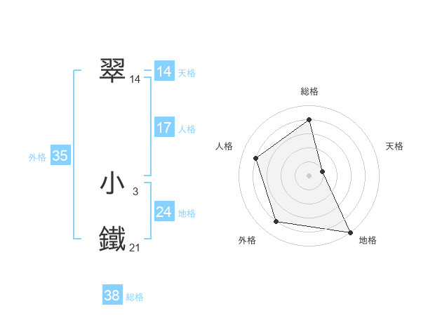 翠 小鐵さんを姓名の画数から五運を鑑定