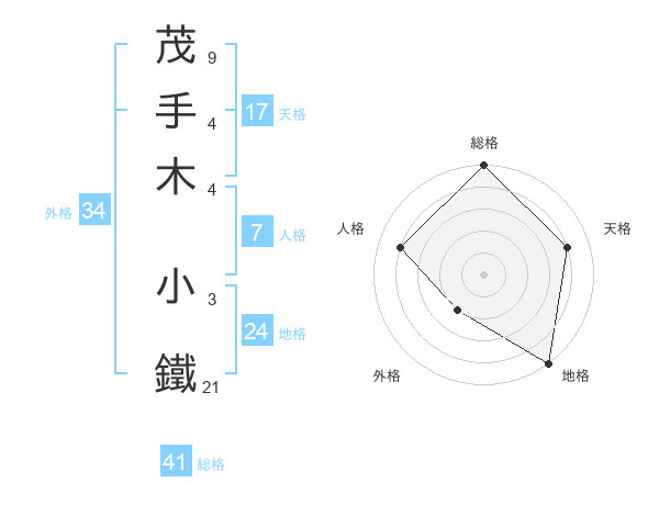 茂手木 小鐵さんを姓名の画数から五運を鑑定