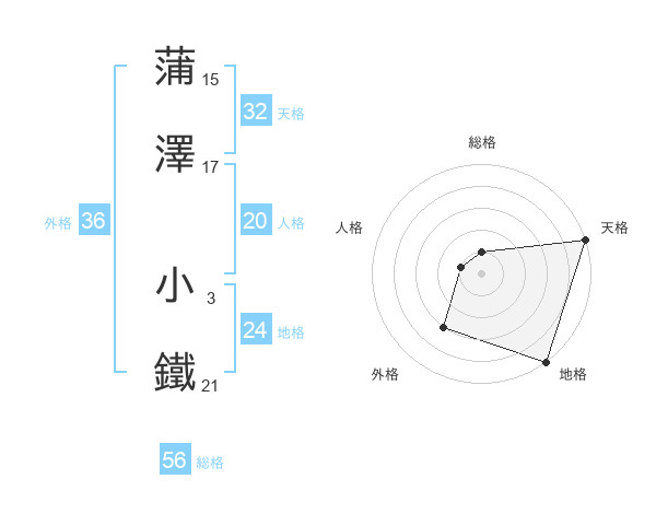 蒲澤 小鐵さんを姓名の画数から五運を鑑定
