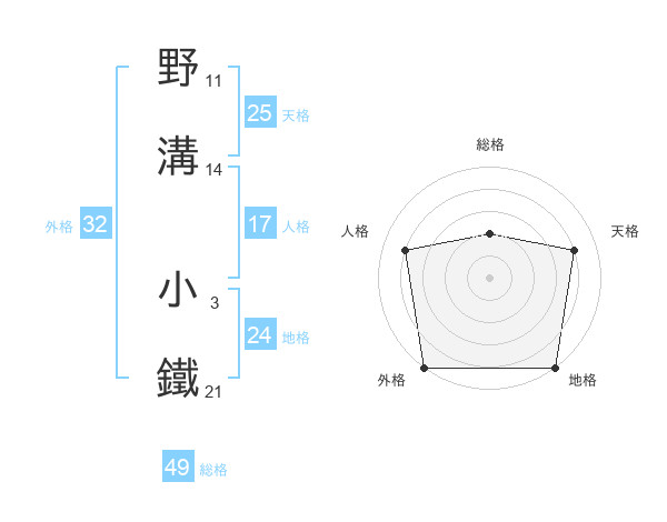 野溝 小鐵さんの総格は49画の2点!