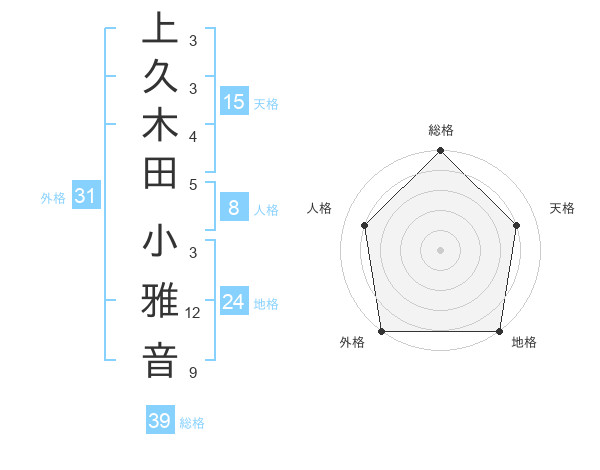 上久木田 小雅音さんを姓名の画数から五運を鑑定