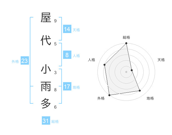 屋代 小雨多さんの総格は31画の5点!