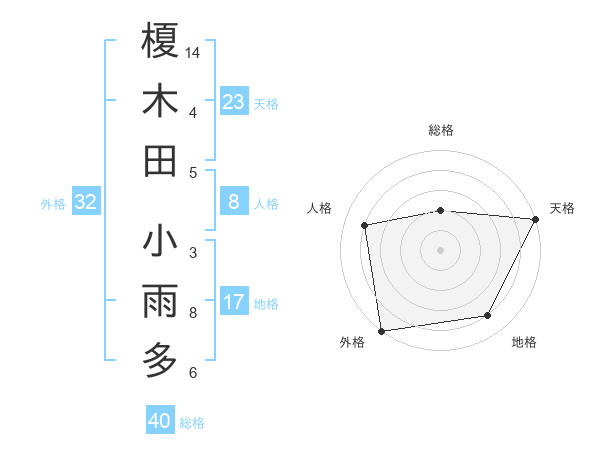 榎木田 小雨多さんを姓名の画数から五運を鑑定