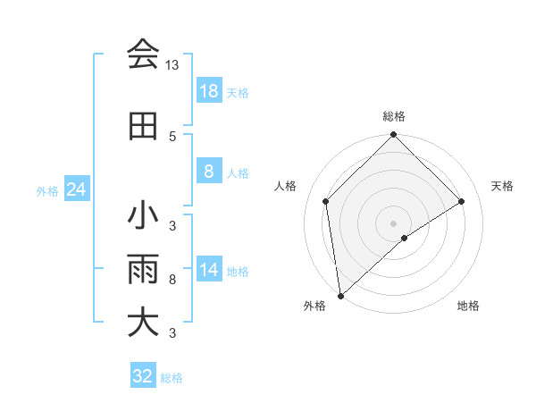 会田 小雨大さんを姓名の画数から五運を鑑定