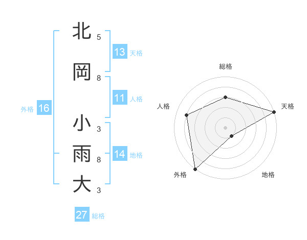 北岡 小雨大さんを姓名の画数から五運を鑑定