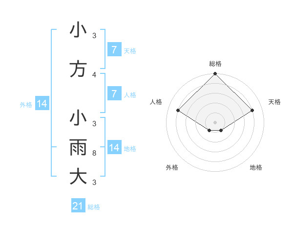小方 小雨大さんを姓名の画数から五運を鑑定