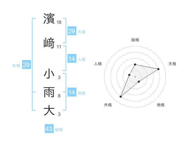 濱﨑 小雨大さんの総格は43画の2点!