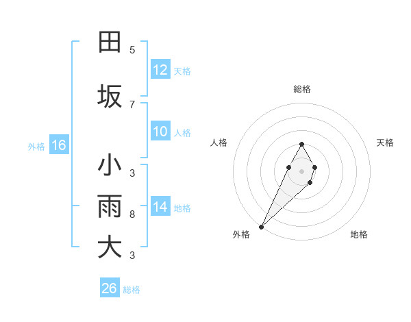 田坂 小雨大さんを姓名の画数から五運を鑑定