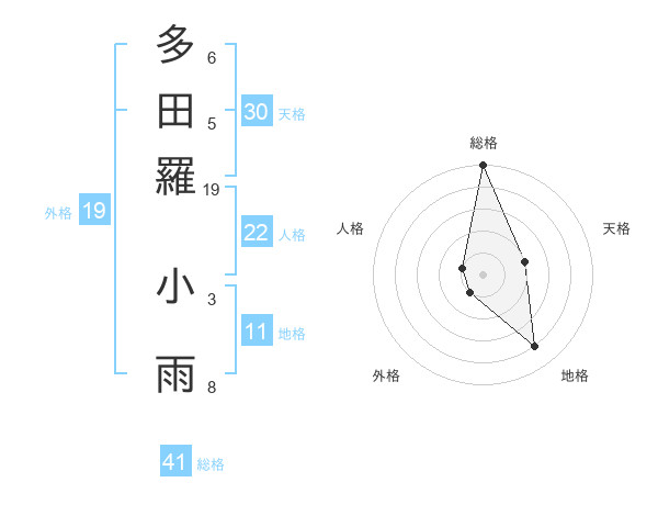 多田羅 小雨さんの総格は41画の5点!