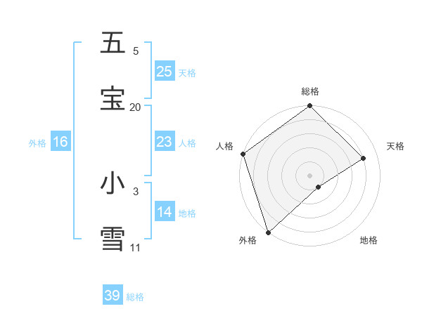 五宝 小雪さんを姓名の画数から五運を鑑定