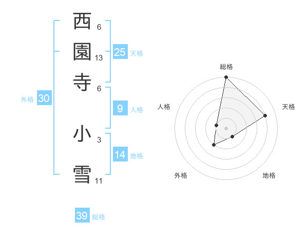 西園寺 小雪さんの総格は39画の5点!