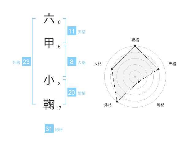 六甲 小鞠さんの外格は23画の5点!