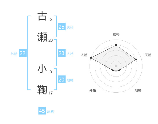 古瀬 小鞠さんの総格は45画の4点!