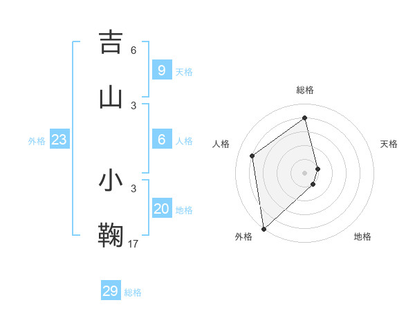 吉山 小鞠さんの外格は23画の5点!