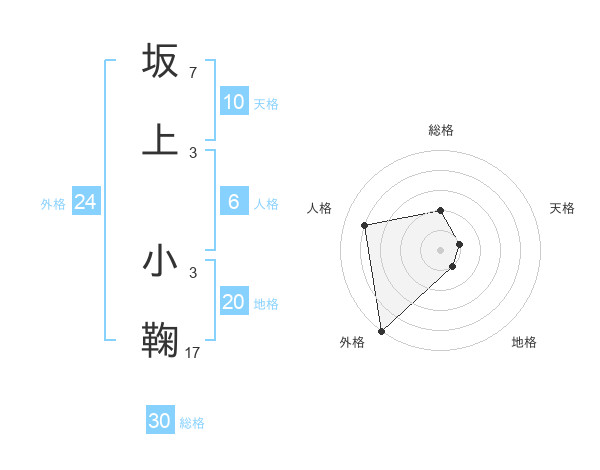 坂上 小鞠さんの外格は24画の5点!