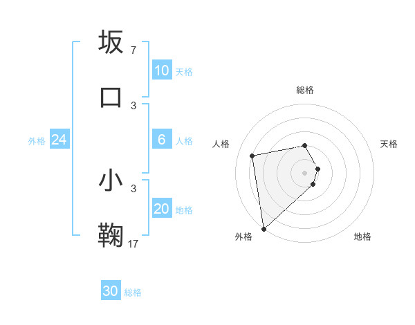 坂口 小鞠さんの外格は24画の5点!