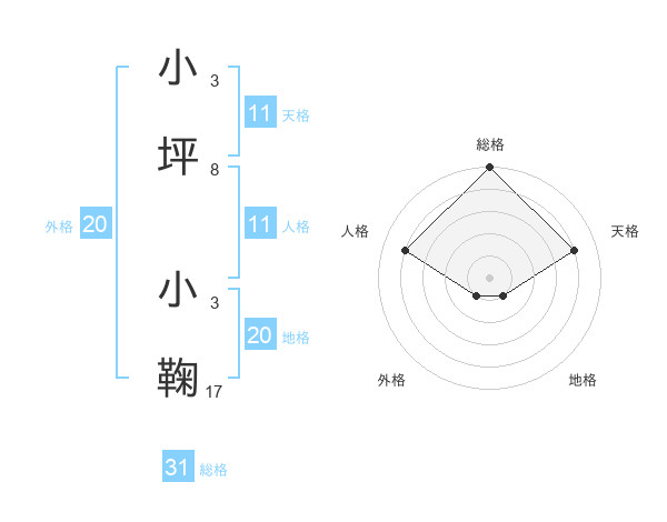小坪 小鞠さんの外格は20画の1点!