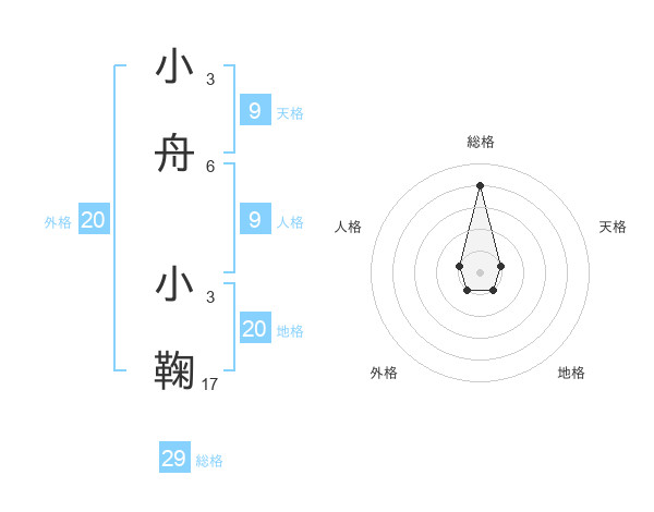 小舟 小鞠さんの総格は29画の4点!