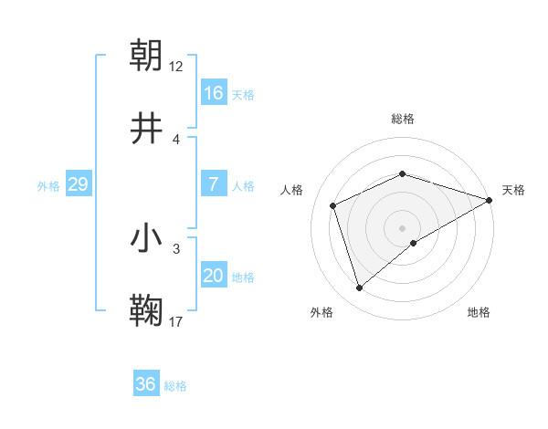 朝井 小鞠さんの天格は16画の5点!