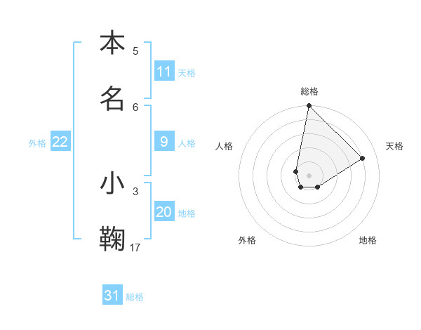 本名 小鞠さんを姓名の画数から五運を鑑定