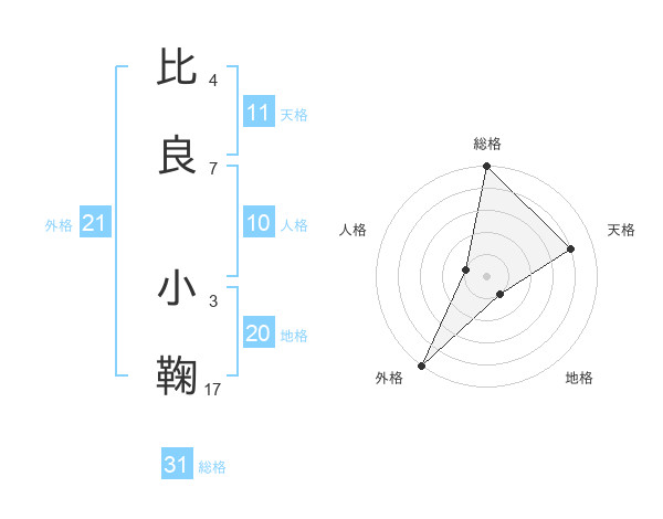 比良 小鞠さんの外格は21画の5点!
