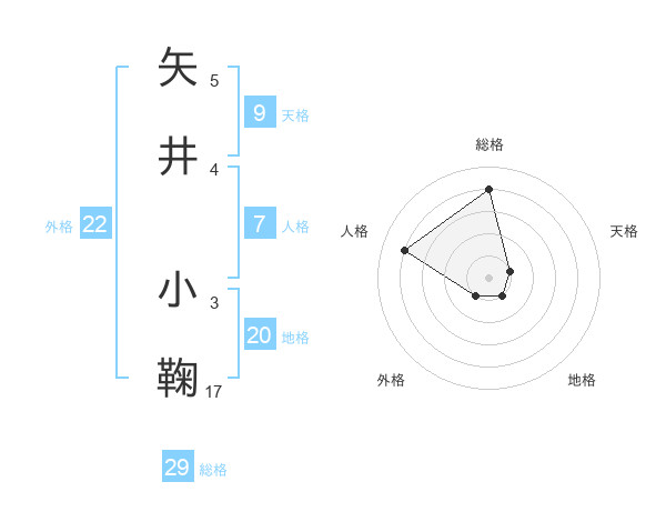 矢井 小鞠さんの総格は29画の4点!