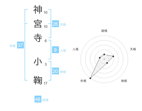 神宮寺 小鞠さんの外格は37画の5点!