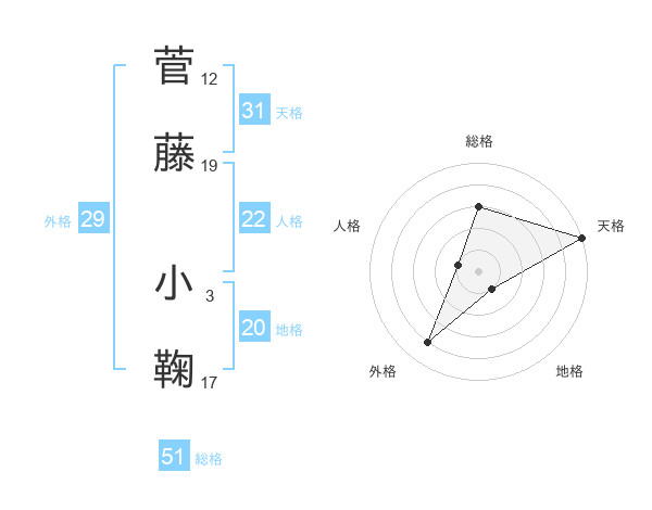 菅藤 小鞠さんの総格は51画の3点!