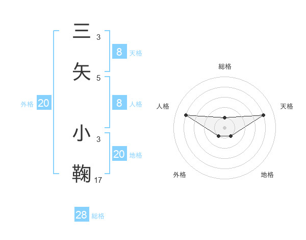 三矢 小鞠さんの外格は20画の1点!