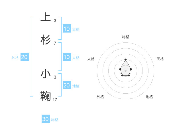 上杉 小鞠さんの総格は30画の2点!