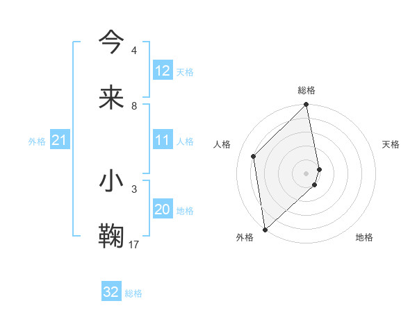 今来 小鞠さんを姓名の画数から五運を鑑定