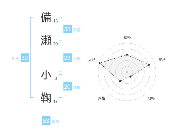 備瀬 小鞠さんの総格は53画の3点!