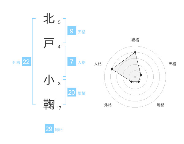 北戸 小鞠さんの総格は29画の4点!